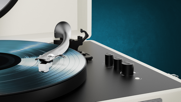 Features a range of controls to enhance your listening experience. It includes a speed selector switch (33, 45, or 78 RPM) for different vinyl types, and a tonearm lift lever for smooth needle placement.